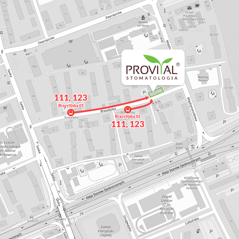 Nasza Klinika mieści się w Warszawie, przy ulicy Brazylijskiej 13 w wyjątkowym miejscu jakim jest Saska Kępa.